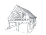 This frame features a timber truss that allows for a clear span on the lower floor. This means no posts to get in the way of your vehicles or work area. The steep pitch roof and 3’ knee wall provides for ample room in the loft. The frame has been designed for two large garage doors (8’ high x 9’ wide) on the gable end but it can be customized for three doors on the long wall.