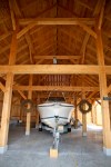 This larger frame has massive tie beams that run the full 32’ width. The four large bays provide plenty of room between posts. The loft area has a knee wall that can be increased to provide for a full two story building. An optional lean-to can be added the full length of the frame.
